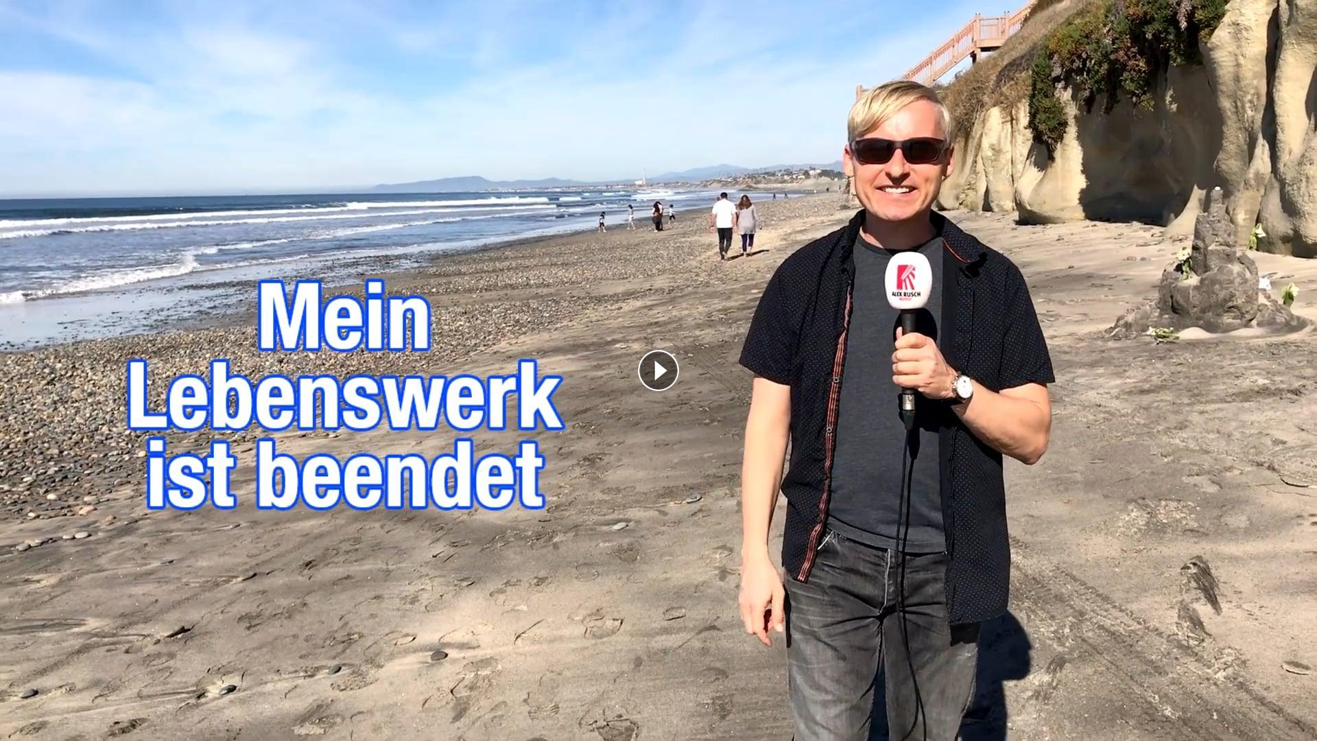 »Mein Lebenswerk ist beendet« … Mit diesem überraschenden Satz beginnt Alex Rusch die Folge 135 der »Alex Rusch Show« und erklärt, was genau er damit meint. In der Rubrik »Einblicke« zeigt er eines der abgeschlossenen Hauptprojekte seines Lebens. Diese Folge wurde am Strand von Encinitas in Kalifornien gedreht.